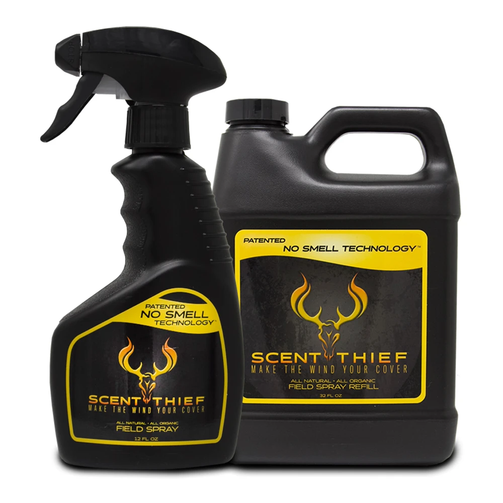 Scent Thief’s revolutionary formula is the first and only hunting scent blocker product to completely remove an animal’s sense of threatening odors. Our patented No Smell Technology relaxes the olfactory epithelium, temporarily eliminating an animal’s sense of smell. When an animal gets Scent Thief Field Spray in their nose, they won’t be able to smell anything else. Guaranteed. The wind can now act in your favor. All natural, all organic ingredients are safe for skin, clothing and the environment. The Scent Thief Spray